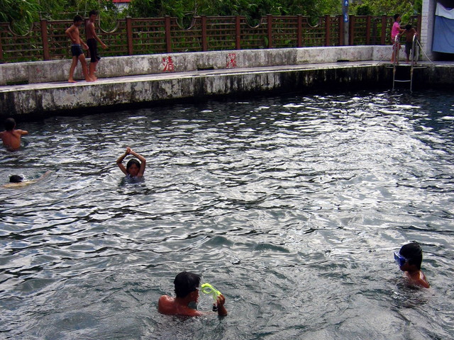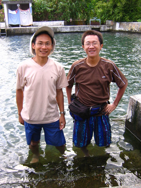 學長提議互相撥水打水仗,第一回合學長攻勢猛烈我吃水換不過氣來敗退,第二回合學聰明了,臉朝下爭取換氣機會,雙手不停的往前撥水阿!學長:「還不輸!還不輸!」我:「哇哇哇哇哇~~~」,哈哈哈哈,好久沒這樣全力以赴的感覺了,好「爽」!最後我因為右腳踩滑而停止,但是真的很過癮!
