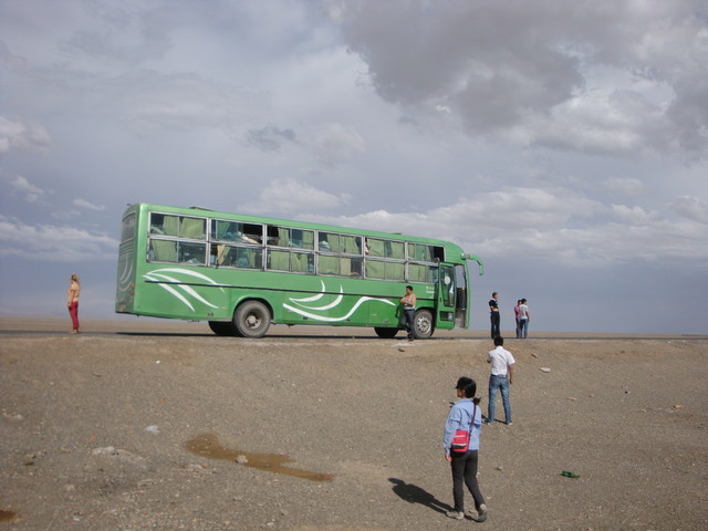 長途大巴的臥舖有三排,分上下兩層。舖位剛好一人容身,有一個枕頭和毯子。不算乾淨但還尚可。乘客要對號入座,捷克帥哥剛好就在我的前面,他很親切的拿lonely planet 跟我說明他們要去的地方,還有猜測接下來大巴會走哪一條路線到青海湖。