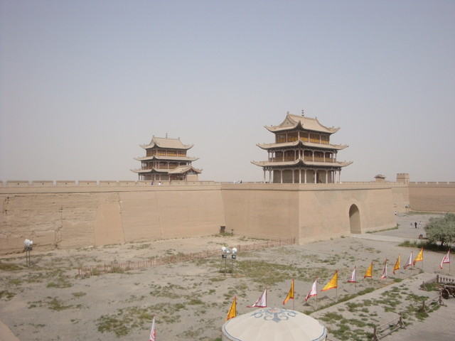 昨晚在鏡鐵市場前找到了一個還不錯的出租車司機李大哥。請他載我們到懸臂長城和嘉峪關城。