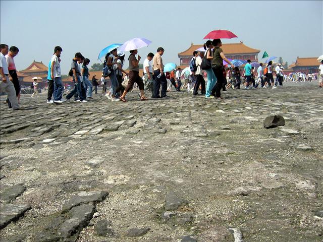 我們趕上了百年一次的紫禁城維修,但是故宮內還是人潮如織。加上百年的歲月消磨,難怪太和殿廣場上的石面幾乎被踏穿。