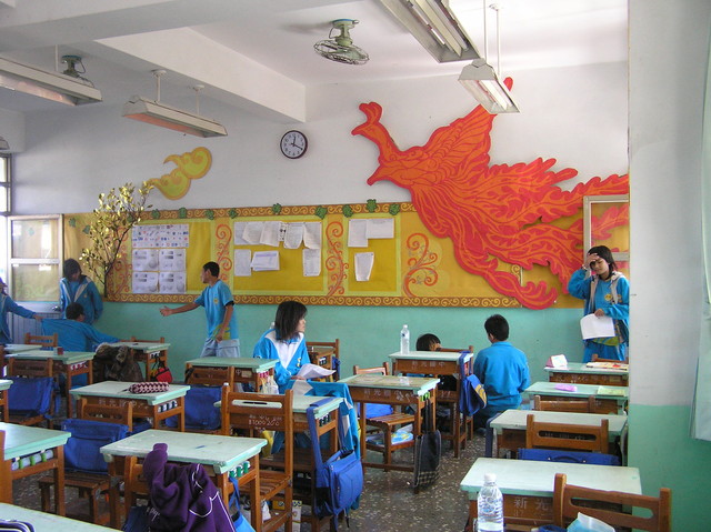 從十月初花了一個多月的時間製作,孩子們都很關心布置的進度,甚至擔心會遭人破壞。導師有時候急,恨不得立刻做完,看到成品,所以常常下班後在辦公室待到六點才離開,可能是幫忙做一點或先做準備工作。但是相信過程也是一個很好的學習,由孩子自己完成,共同關心一件事情,一起維護班上的環境,這樣班上才會更好,鳳凰也才會真正翱翔在天際。