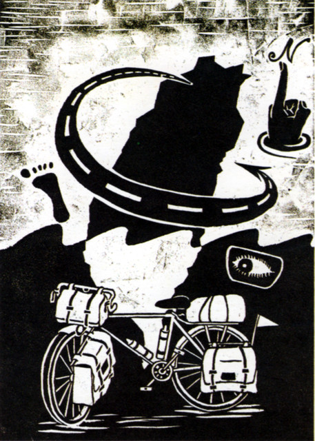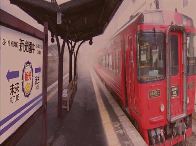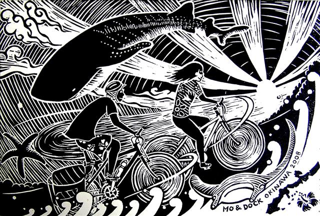 正欣師概念發想,我完稿。用去年去九州的照片合成加工,輸出於帆布上再釘到木版上。