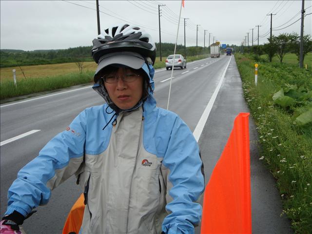 吃飽才有力氣在雨中騎一公里的上坡路上去墳場旁邊的知床國設營場,看到管理室還有燈光,我們決定乖乖的繳露營費。和善的老先生面對我們希望能在管理棟的廊下搭帳篷感到很為難,最後我們還是決定在樹下紮營就好,老先生還特地過來看我們。這也是我們「第一次」在雨中紮營。(前幾次雨下到傍晚就停了)
