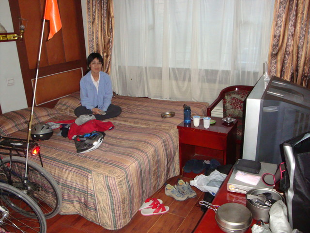 進到張掖城區,在高溫炎熱的環境下只想快點歇息,結果就住進了華誼賓館(鼓樓附近),不帶空調雙標70,帶空調80,當然不用空調。我們就這樣把車搬進玻璃旋轉門,再搬上三樓…如果以後要住宿,其實鼓樓附近還有很多旅舍可以去問看看…(我們住的房間馬桶不太通,三不五時要請師傅來用「拖把」通一下。但是有紗窗,對討厭蚊子的大可是福音…)